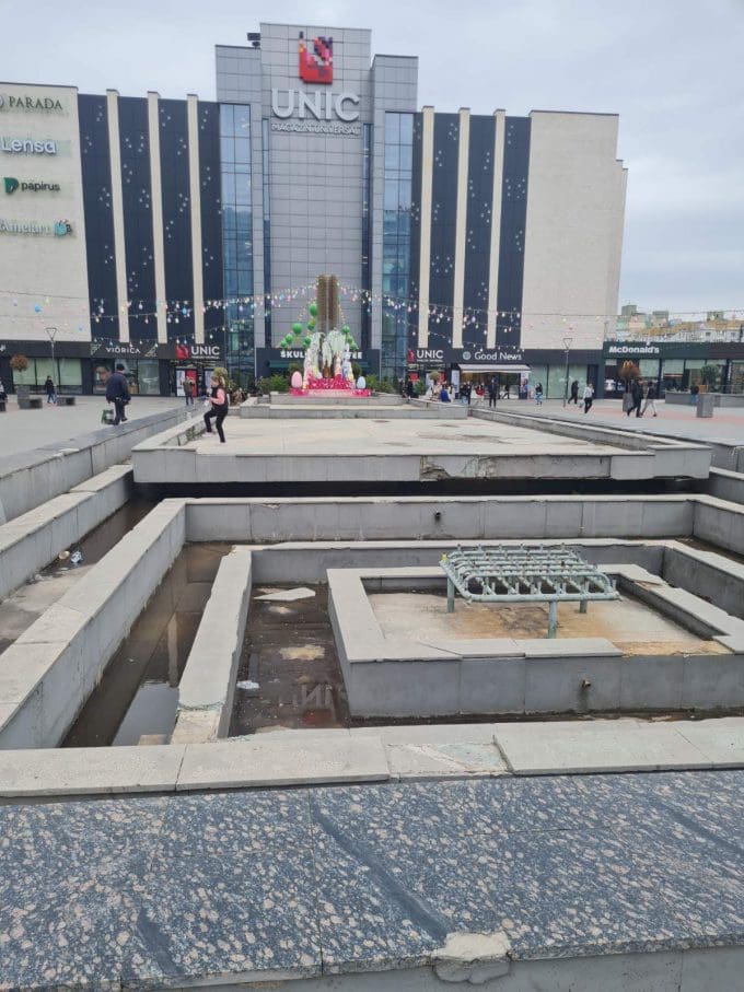 Когда-то это было одно из самых красивых мест Кишинева, но теперь его состояние не соответствует облику центральной части города. Речь идет о сквере перед Торговым центром «UNIC»: фонтан в плачевном состоянии, обветшавший тротуар, видны старые трубы и т. д.