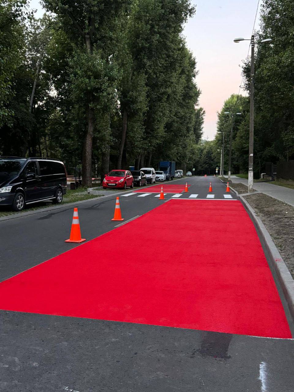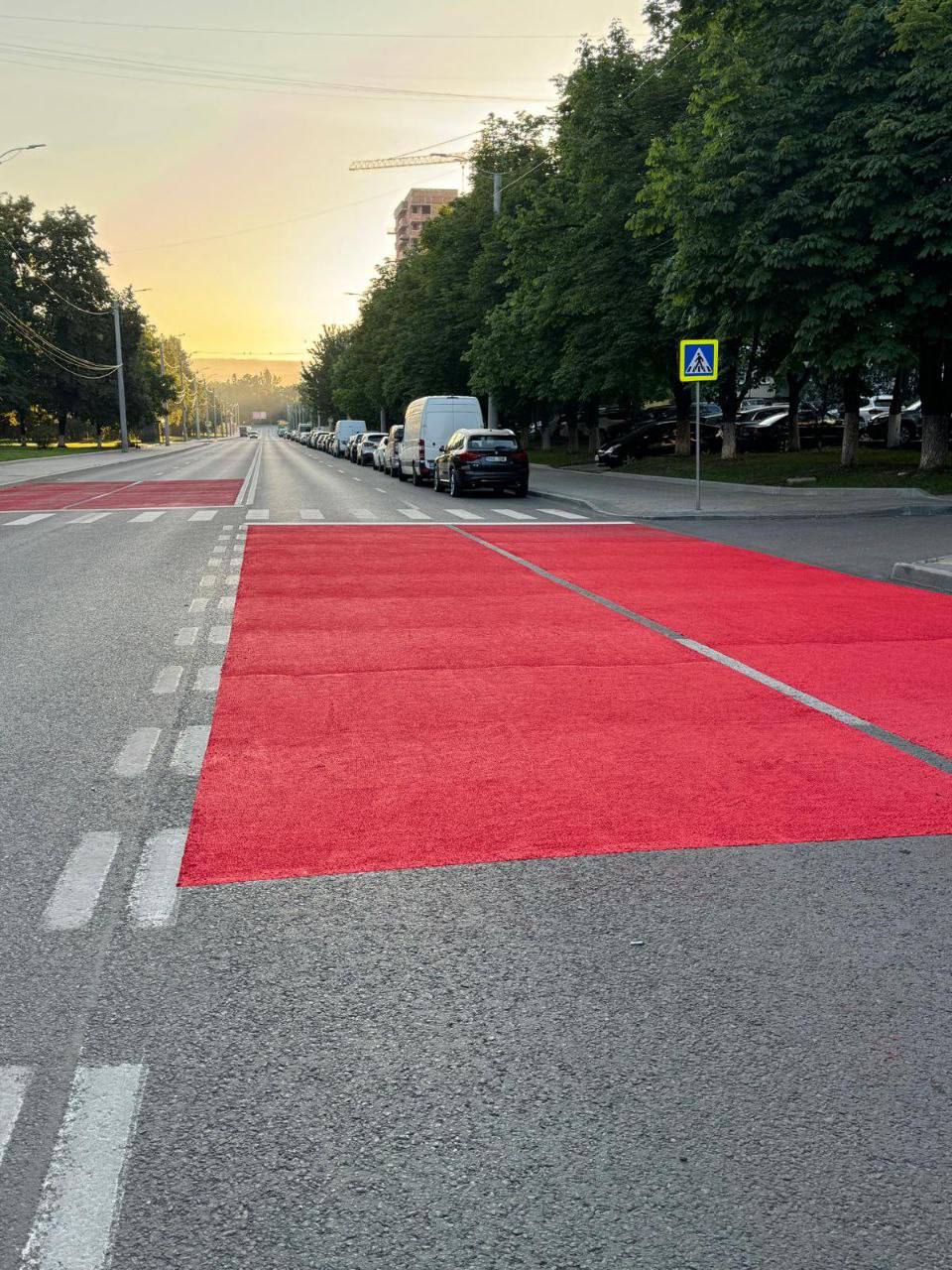 «»Красные дорожки» привлекают внимание водителей задолго до приближения к пешеходному переходу. Разметку наносят краской из абразивного материала, что способствует сокращению тормозного пути, предоставляя водителям дополнительное время для реакции», — отметили в мэрии.