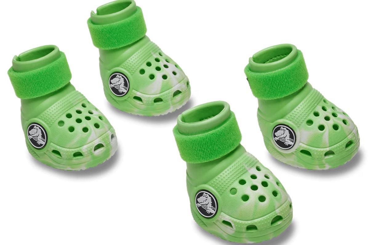 Pet Crocs созданы по образцу культовых кроксов, которые носят люди. Эта обувь для домашних животных имеет ремешок на липучке в области щиколотки, обеспечивающий надежное прилегание к лапам вашей собаки. Ботинки доступны в двух ярких цветах: «Зеленая слизь» и «Драгонфрут».