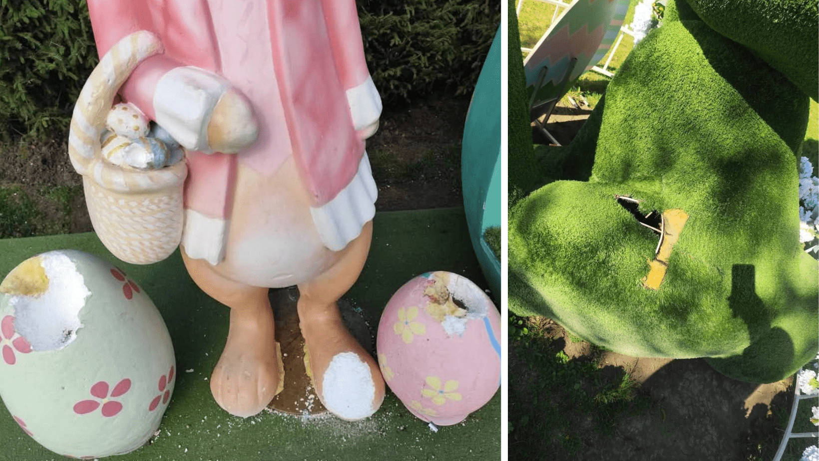 (ФОТО) Кто-то радуется, кто-то разрушает: на Чеканах пасхальные декорации подверглись вандализму