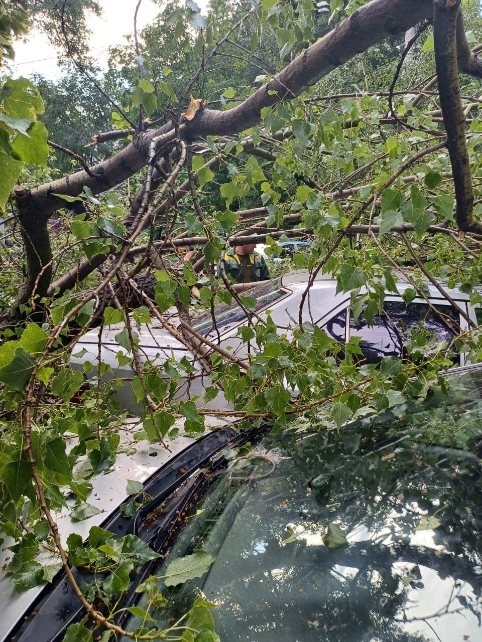 Службы были вызваны на 17 адресов в городе. Два автомобиля получили повреждения в результате падения ветвей»,- сообщает мэрия столицы.