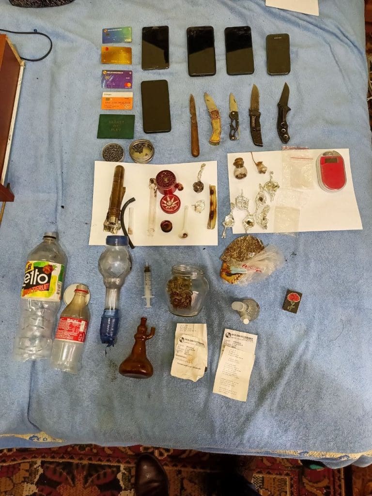 Во время ряда обысков в домах подозреваемых полицейские обнаружили несколько пакетов с марихуаной и веществами, похожими на наркотик типа PVP (соль), семена каннабиса, устройство для измельчения высушенной растительной массы марихуаны, приспособления для потребления наркотиков, мобильные телефоны и банковские карты.