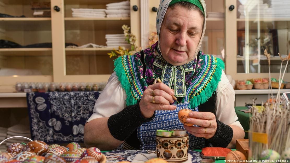 Особое место занимают расписные пасхальные яйца, особенно традиции лужицких сербов. Их узоры имеют символическое значение, а само искусство передаётся из поколения в поколение.