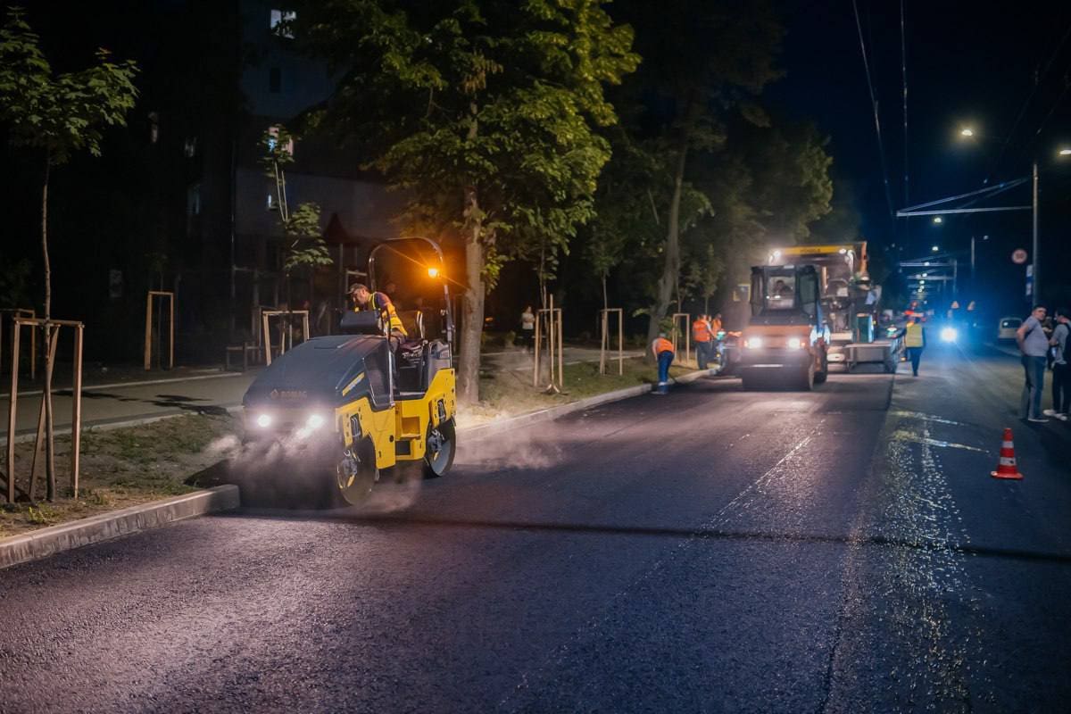В понедельник был уложен первый слой асфальта, а после завершения второго слоя начнётся нанесение дорожной разметки.