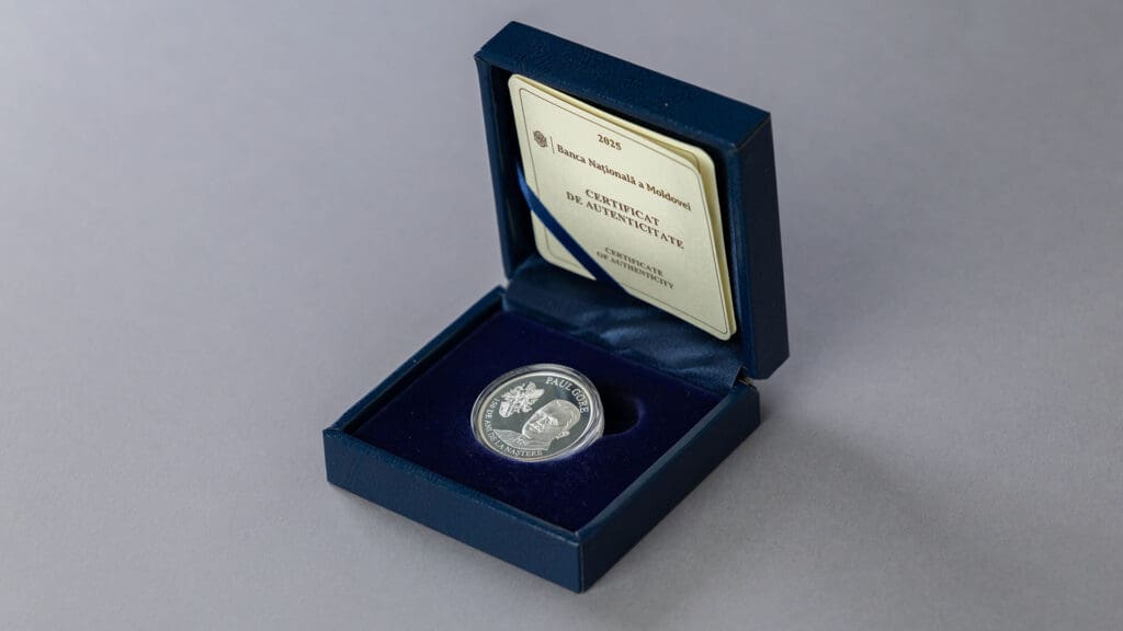 Монета из серии «Личности» посвящена 150-летию со дня рождения молдавского историка, публициста и общественного деятеля Пауля Горе. Она изготовлена из серебра высокой пробы, весит 16,5 грамм и имеет диаметр 30 мм. Её номинал составляет 50 леев, а тираж ограничен — всего 250 экземпляров.