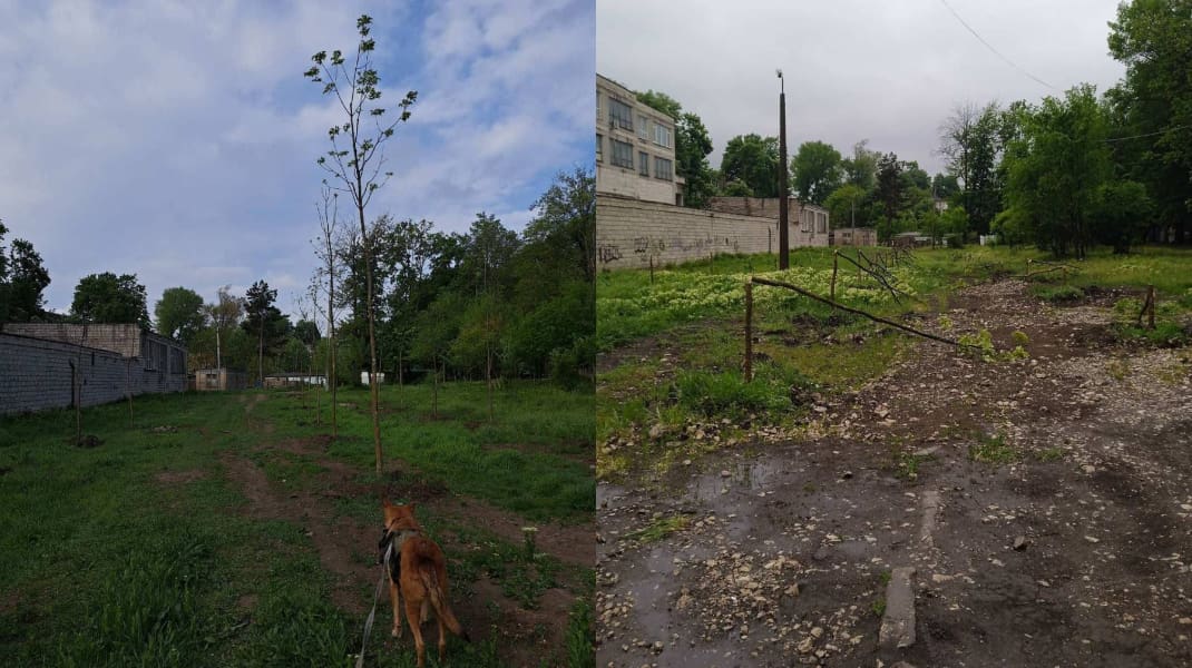 На Чеканах в парке неизвестные поломали саженцы деревьев и перевернули ящики для цветов. Полиция разыскивает злоумышленников.