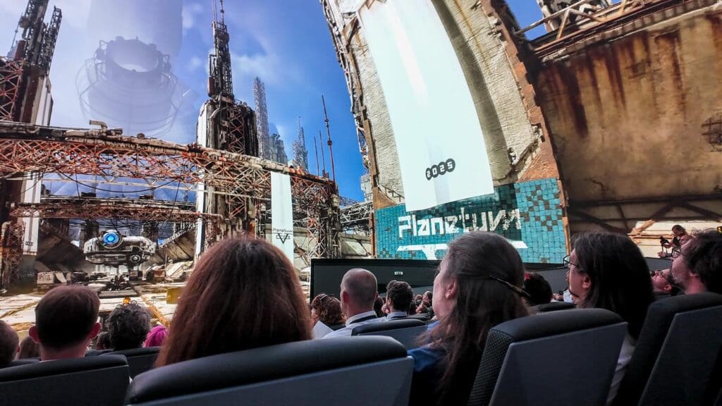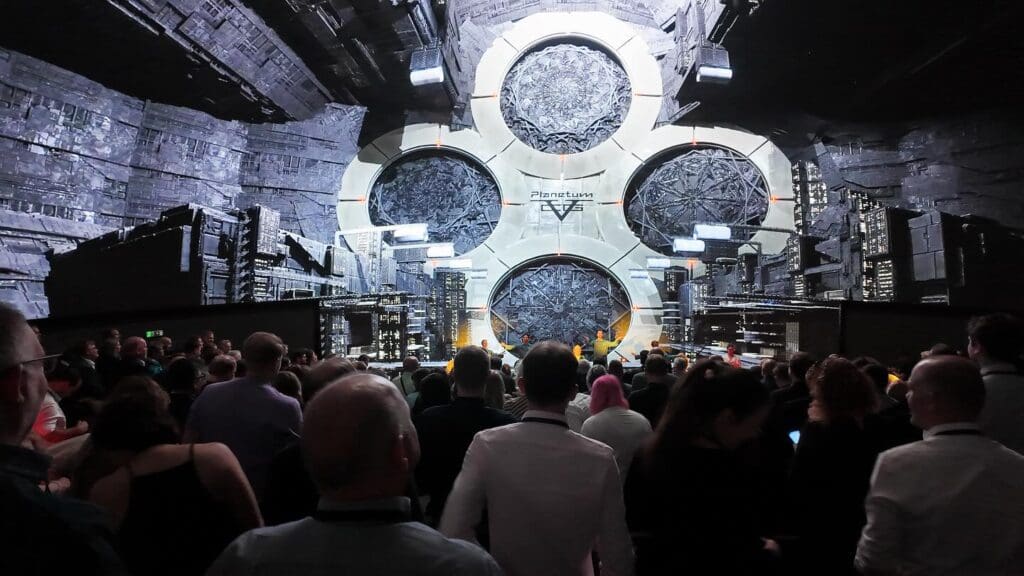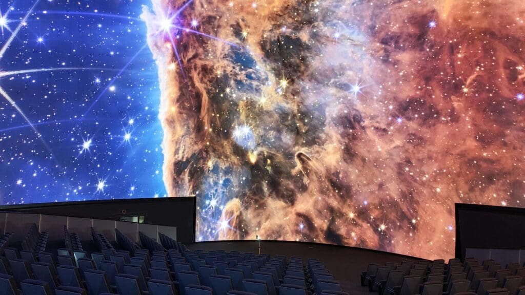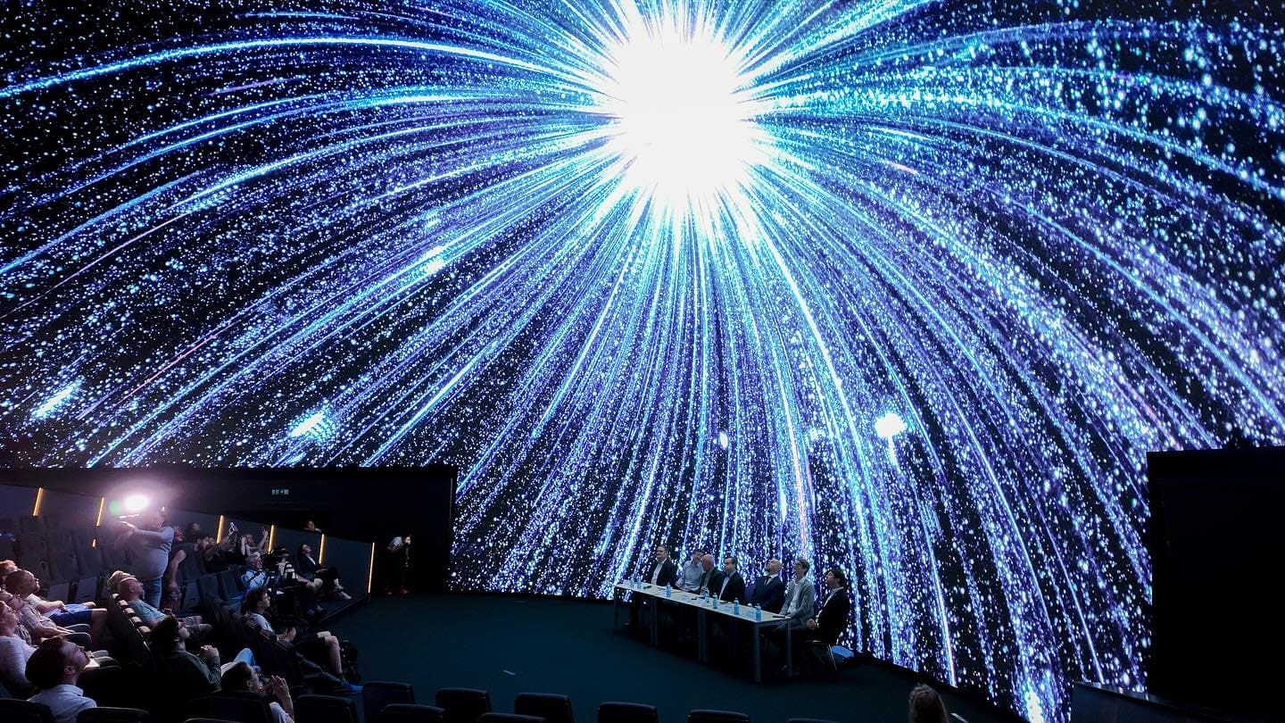 Купол, представленный как первый в своtм роде в Европе, имеет ширину 22 метра и оснащен примерно 45 миллионами светодиодов, с помощью которых создаются изображения звездного неба.