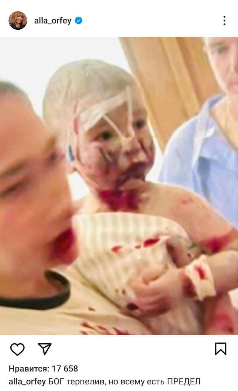 «БОГ терпелив, но всему есть ПРЕДЕЛ», — написала она в инстаграм, опубликовав фото раненых в больнице ребенка и его матери.