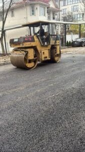 Рабочие бригады полностью нанесли выравнивающий слой по всему периметру, включая внутреннюю подъездную дорогу. Следующим этапом станет укладка финального слоя асфальта, после чего будет благоустроен и участок, ведущий к улице Париж. Завершающая стадия проекта включает работы по озеленению и очистке территории.
