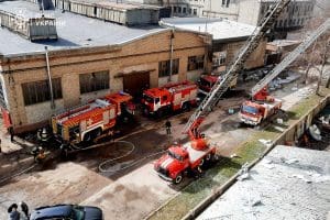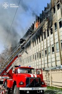 «Сегодня около 13 часов в результате удара в производственное здание на территории одного из предприятий города произошло возгорание на площади более 2 тыс. кв. м.