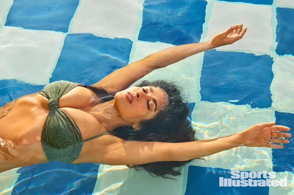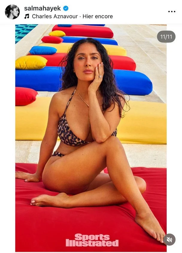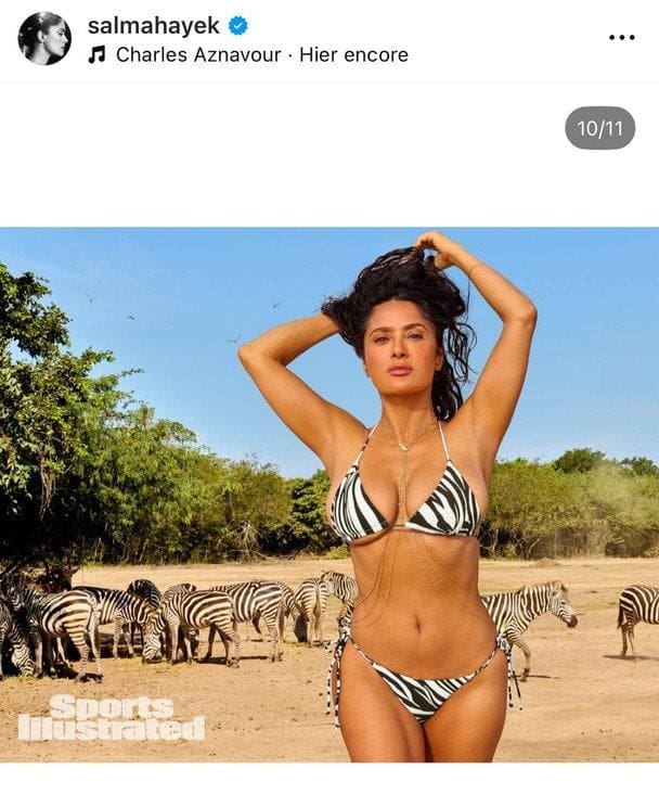 Голливудская актриса Сальма Хайек стала главной героиней нового выпуска популярного журнала Sports Illustrated Swimsuit. 58-летняя звезда позировала в темно-зелёном бикини, подчёркивающем её стройную фигуру, дополнив образ изысканными украшениями — цепочками и кулоном с камнем.