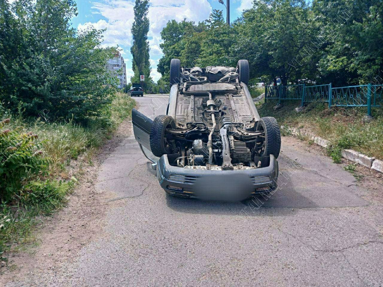 В Тирасполе днем 16 мая произошло ДТП. Водитель такси – автомобиля Mitsubishi – ехал по двору, не справился с управлением и перевернулся.
