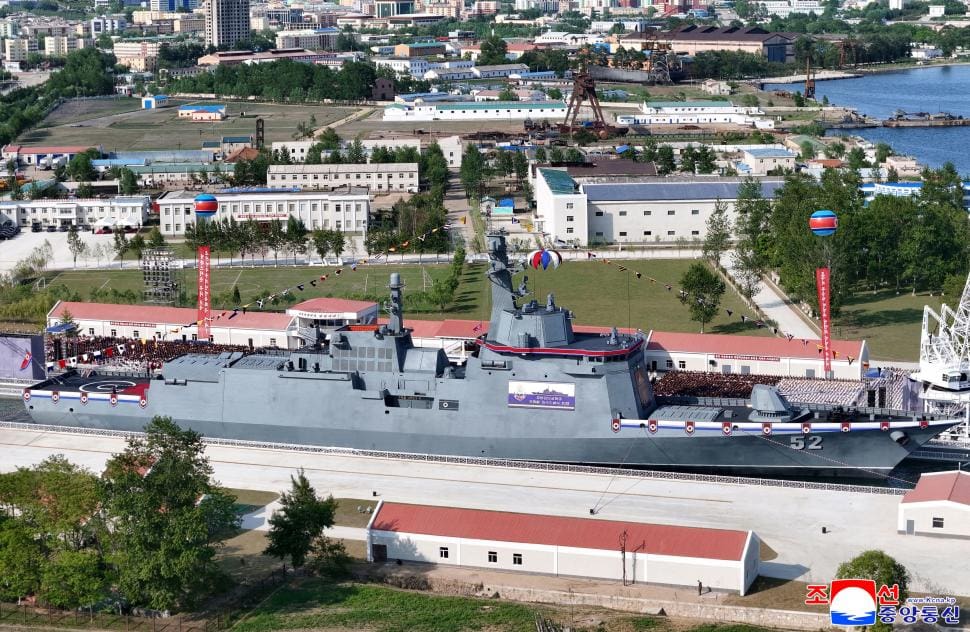 Этот военный корабль — один из двух новых 5000-тонных эсминцев, построенных Северной Кореей за последний год и спущенных на воду с начала апреля.