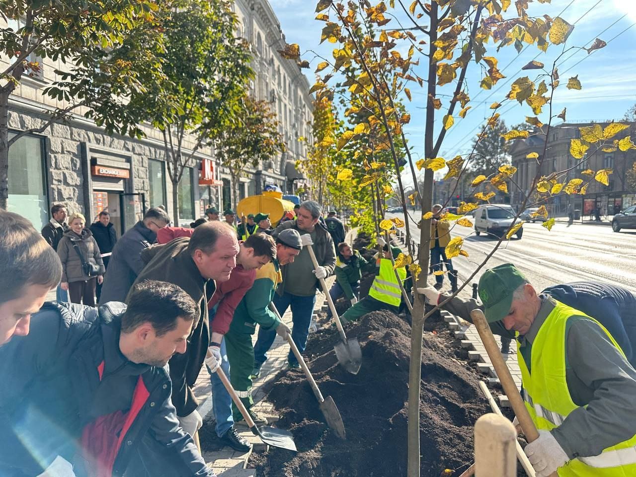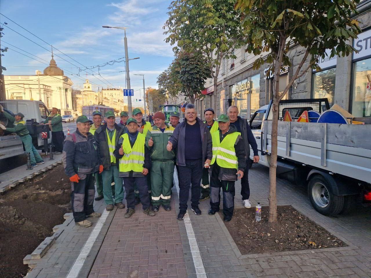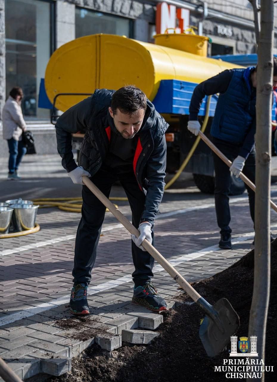 В центре столицы сегодня оживленно. Сотрудники кишиневской мэрии и специалисты муниципального предприятия «Ассоциация зеленого хозяйства» сажают липы на проспекте Штефана чел Маре.