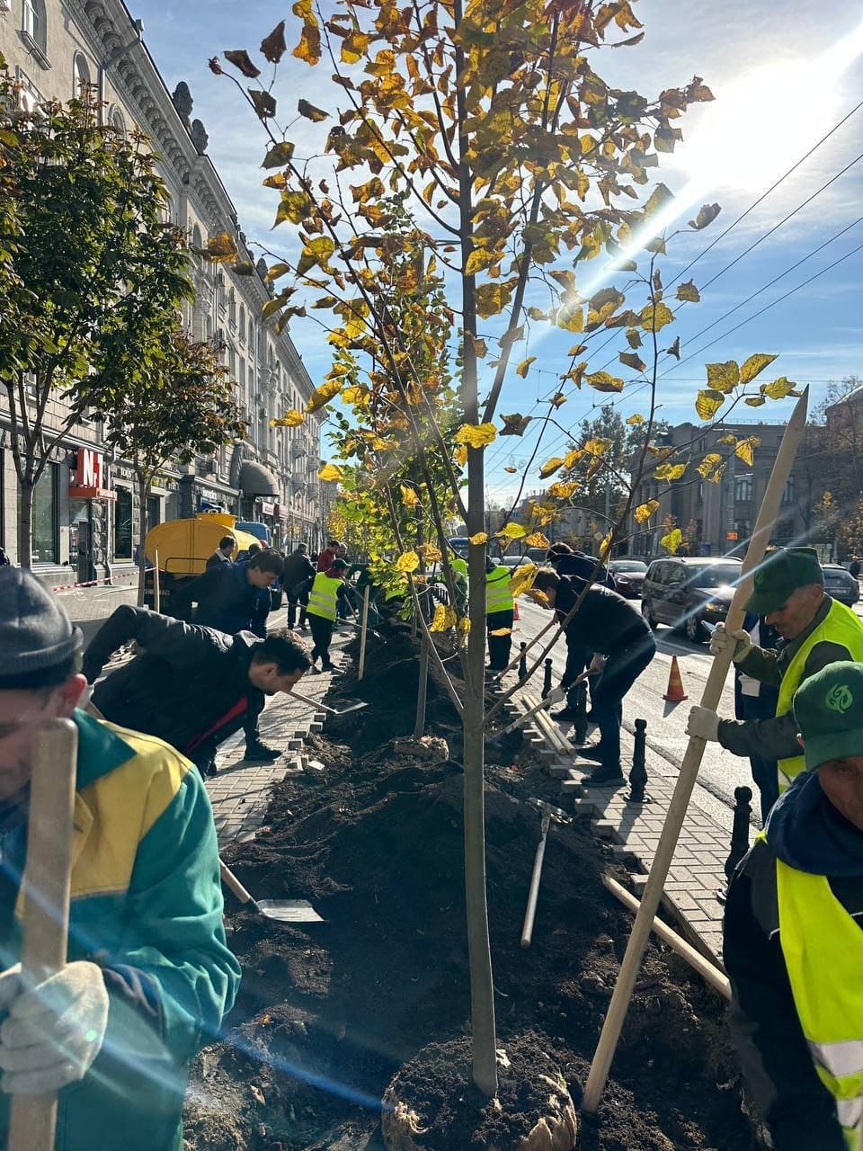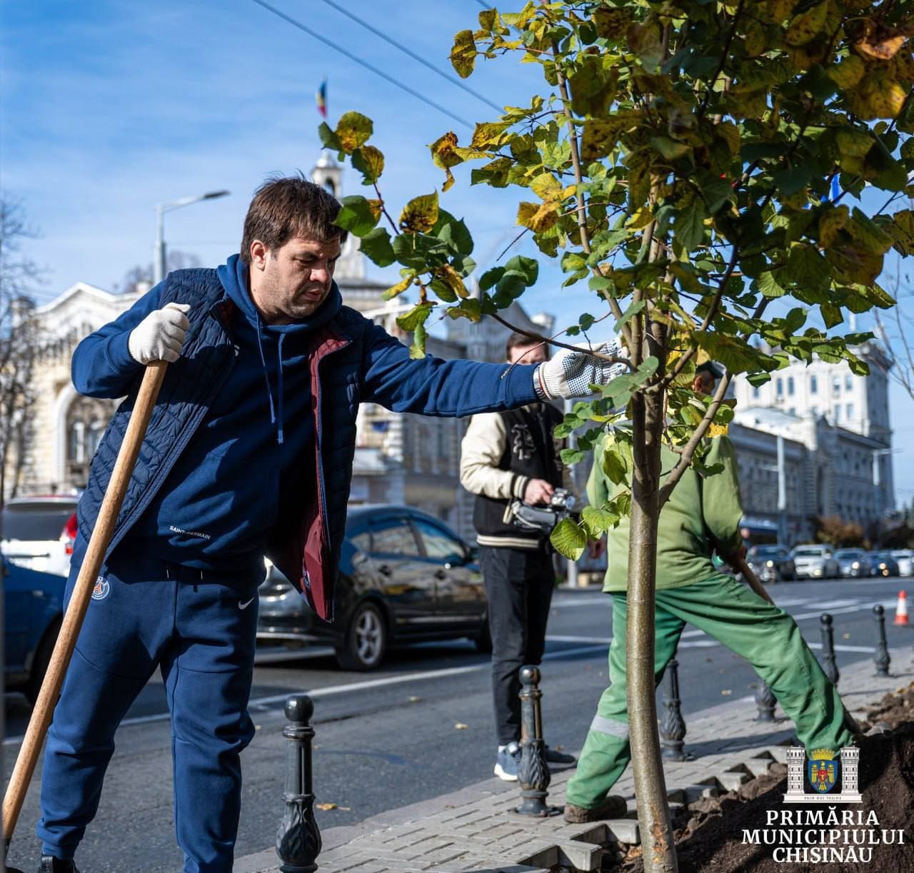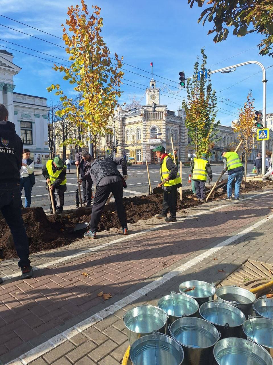 В центре столицы сегодня оживленно. Сотрудники кишиневской мэрии и специалисты муниципального предприятия «Ассоциация зеленого хозяйства» сажают липы на проспекте Штефана чел Маре.