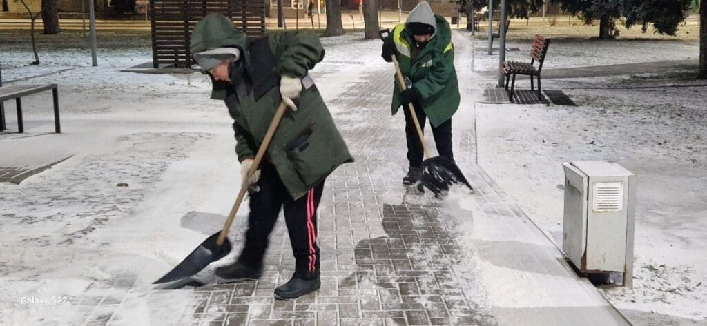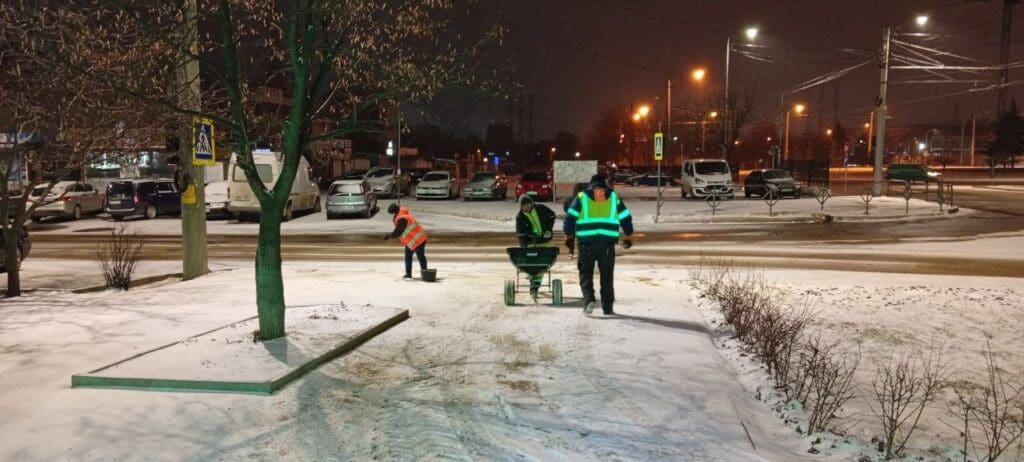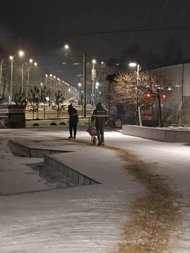По данным городской администрации, бригады в непрерывном режиме, с использованием техники и вручную, обрабатывали улицы, тротуары, пешеходные переходы, подземные переходы, лестницы и остановки общественного транспорта, применяя противоскользящие материалы.