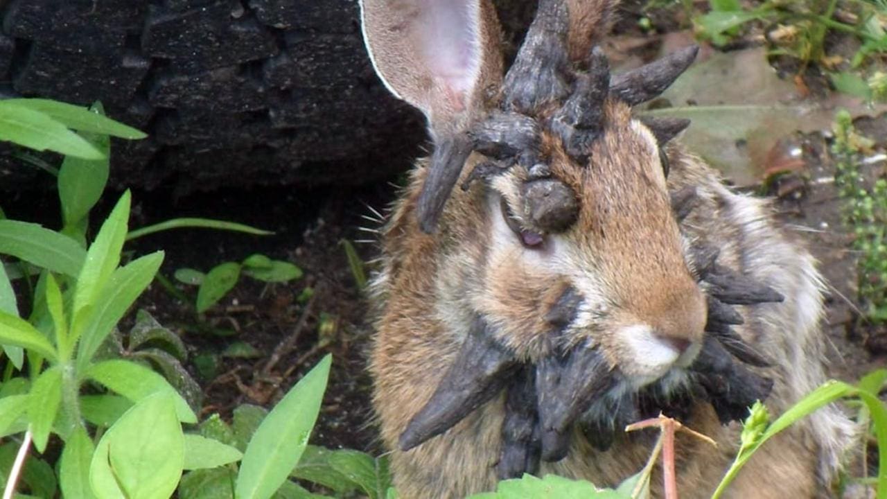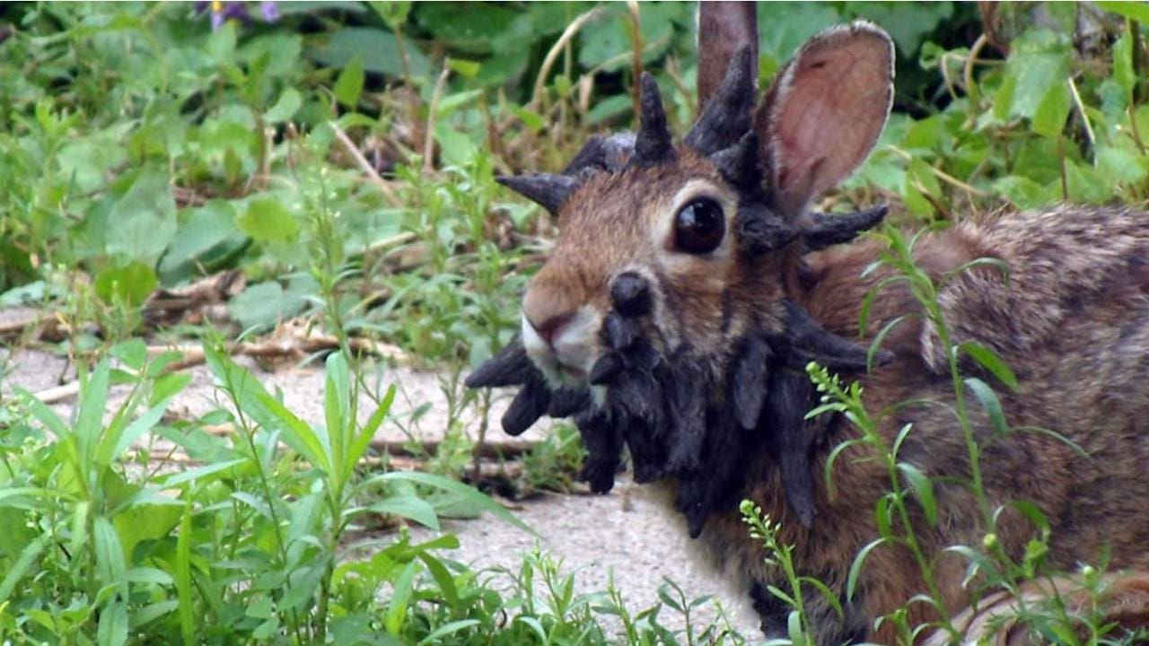 В США распространяется необычная болезнь у диких кроликов — Cottontail Papillomavirus, вызывающая на головах животных черные, похожие на щупальца наросты.