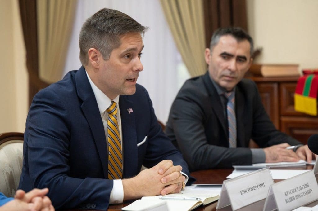 Лидер Приднестровья Вадим Красносельский провел в Тирасполе встречу с госсекретарем США по Восточной Европе Кристофером Смитом.