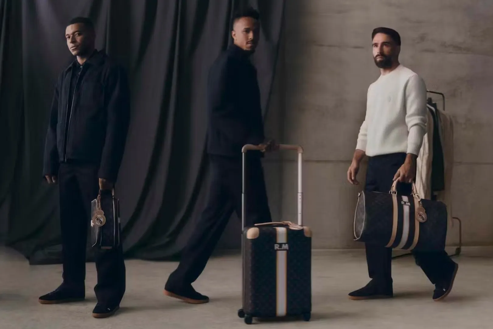 Гардероб дополняет коллекция дорожных вещей, созданных по индивидуальному заказу. В нее входят чемодан Horizon 55, культовый Keepall и рюкзак Christopher, а также такие дорожные аксессуары, как туалетная сумка и обложка для паспорта. Каждая вещь одета в знакомую канву Monogram и украшена белыми и золотыми полосками в цветах клуба. Инициалы «RM» представляют собой оригинальный дизайн, созданный в рамках услуги персонализации Mon Monogram, предлагаемой клиентам Дома.