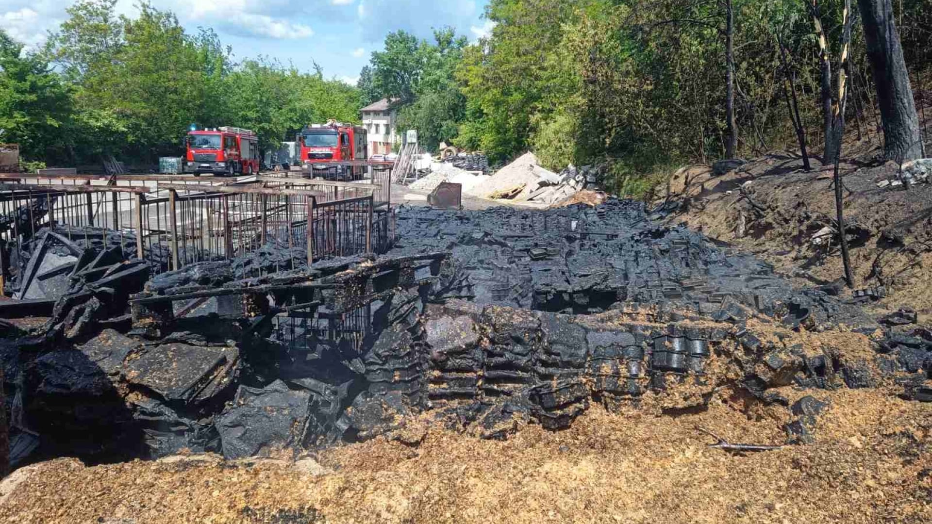 Звонок в Службу 112 поступил в 10:39. По предварительной информации, огонь охватил пластиковые изделия, находившиеся в контейнере. На место происшествия были направлены три расчета спасателей и пожарных. Прибыв на место, они установили, что пламя распространилось на площади около 100 м², где находились пластиковые формы для производства терракоты.