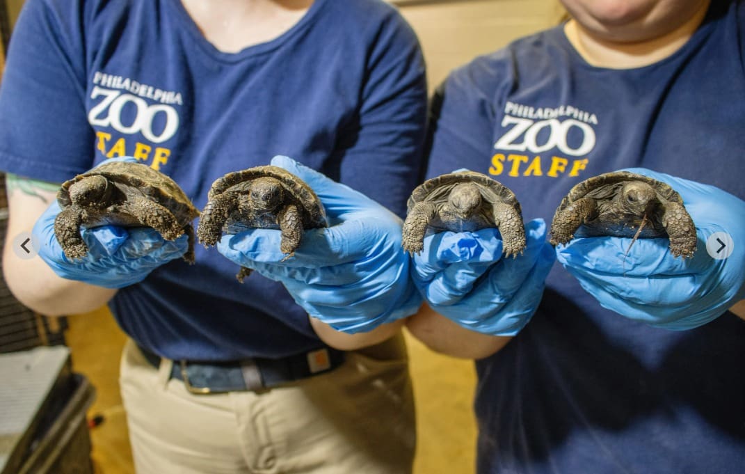 Пара галапагосских черепах из зоопарка Филадельфии, находящихся под критической угрозой исчезновения, впервые стала родителями в возрасте почти 100 лет. В заявлении зоопарка говорится, что он «несказанно рад» появлению четырёх детёнышей — это первый подобный случай в его более чем 150-летней истории. Малыши — потомство самки по кличке Мамочка и самца Абраццо, двух старейших обитателей зоопарка.