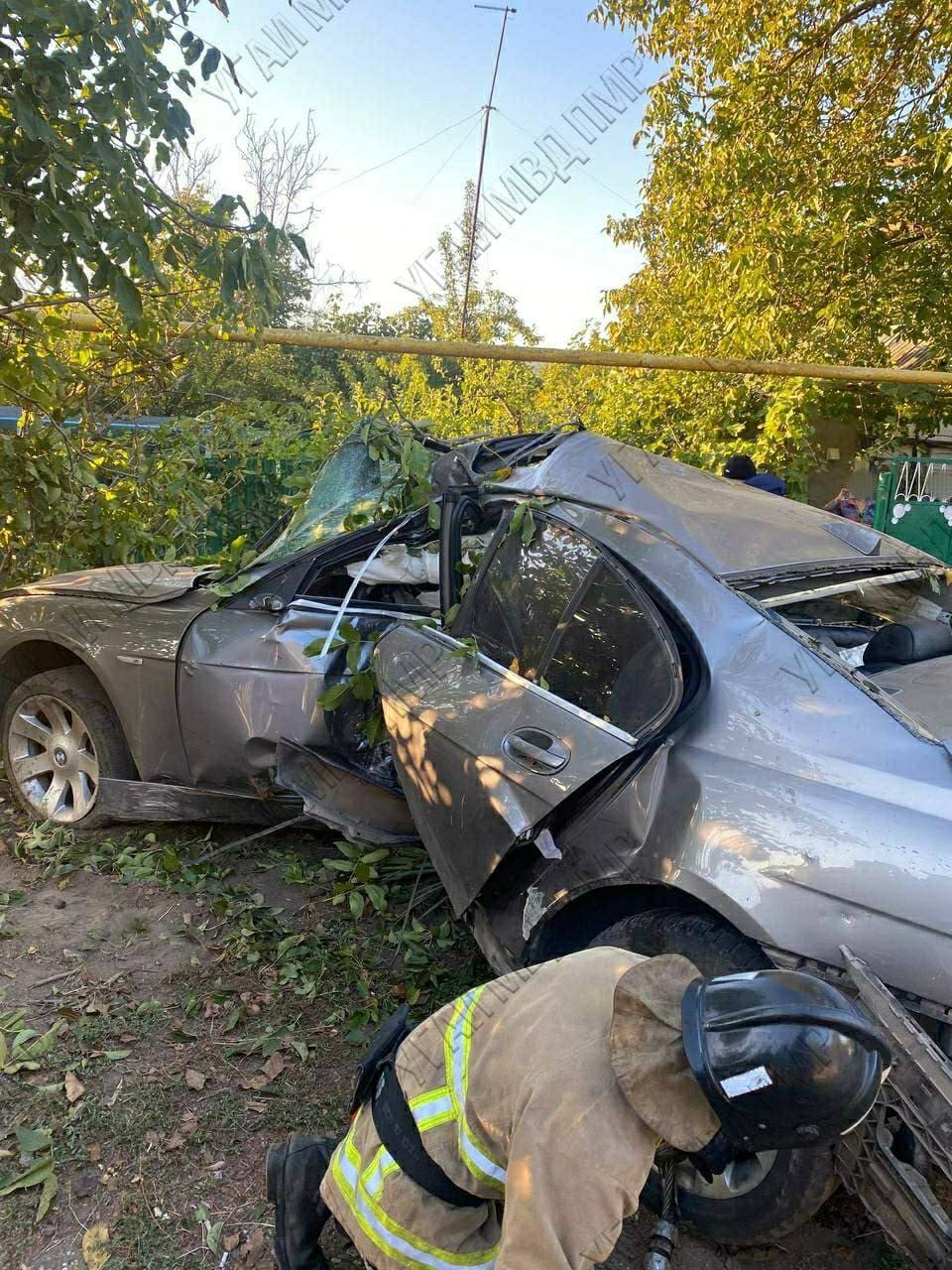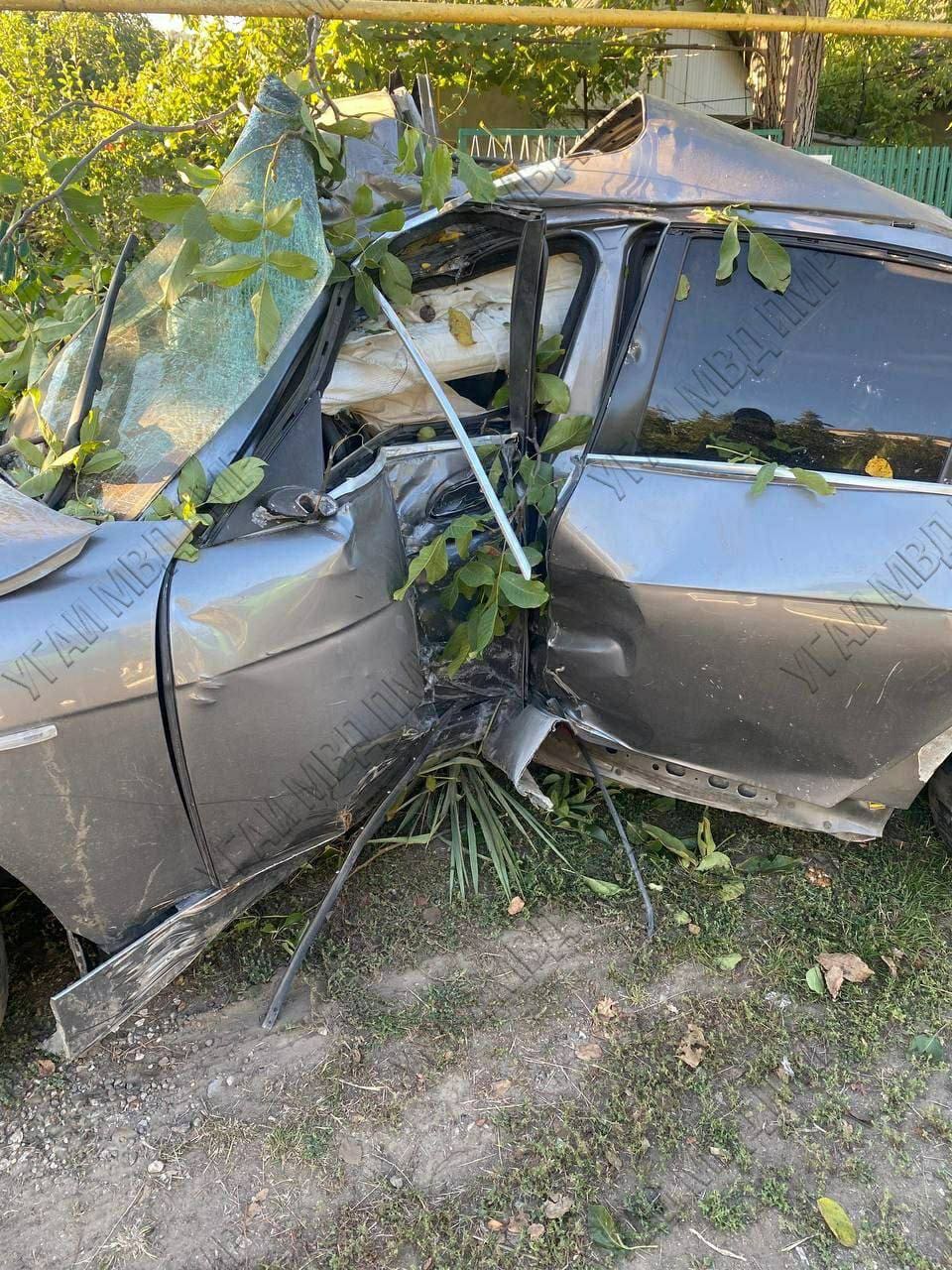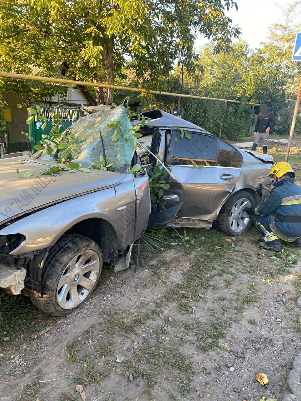 Парень был за рулем BMW. Он не справился с управлением, машина выехала за пределы проезжей части и последовательно врезалась в электроопору, забор жилого дома, а затем в деревья — грушу и орех.