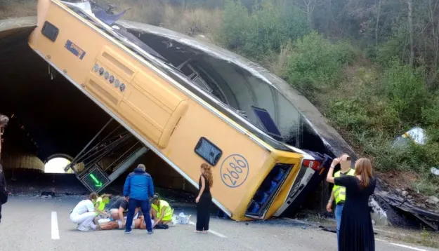 Авария произошла во вторник, 16 июля, на автодороге C-32 неподалеку от Барселоны. Автобус с около 50 пассажирами перевернулся перед въездом в тоннель Пинеда, врезавшись в часть конструкции, и остался висеть в полувертикальном положении, сообщает eurointegration.com.ua