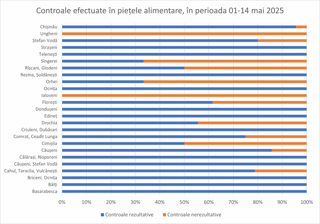 Проверки проводились на рынках, расположенных в муниципиях Кишинев и Бельцы, а также в районах Рышкан, Басарабяски, Сынжерей, Кагула, Штефан Водэ, Каушан, Страшен, Тараклии, Чимишлии, Вулканешт, Комрата, Дрокии, Дубасар, Единец, Унген, Новых Анен, Флорешт, Бричан, Яловен, Калараш, Ниспорен, Чадыр-Лунги и Окницы.