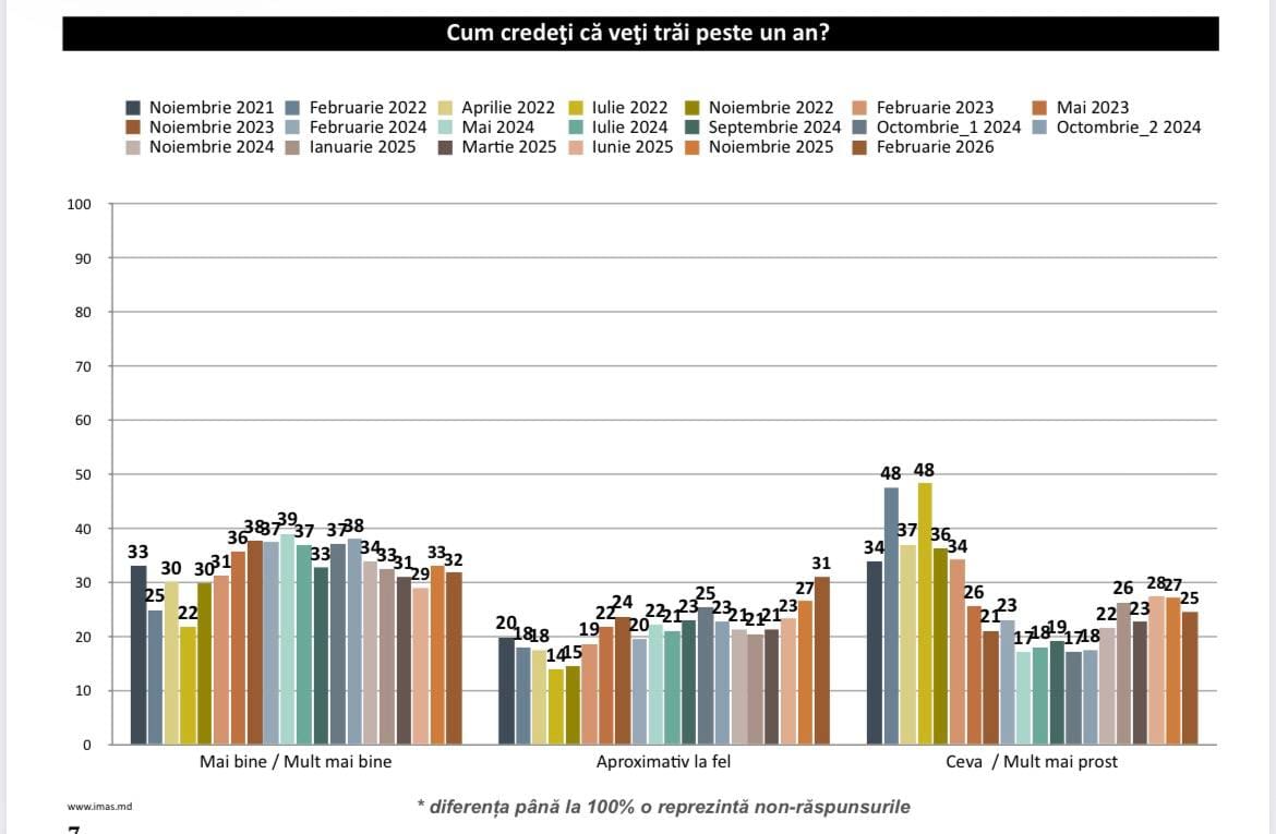 Опрос IMAS проводился в феврале 2026 года среди 1 113 респондентов старше 18 лет на территории Республики Молдовы (за исключением Приднестровья). Максимальная погрешность составляет ±3%.