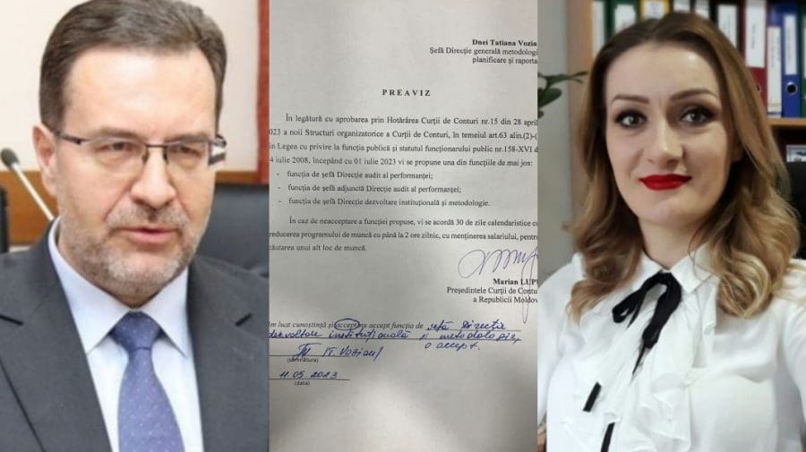 Татьяна Возиян, начальник Главного управления методологии, планирования и отчетности Счетной палаты Республики Молдова (СПРМ), пожаловалась в своем аккаунте в Facebook на то, что ее уведомил председатель СПРМ Мариан Лупу, что в связи с реорганизацией учреждения, ее понижают в должности. Если она не примет одну из предложенных должностей, то по истечении 30 дней ей предстоит искать новую работу. Женщина связывает это решение с недавними откровениями о сексуальных домогательствах.