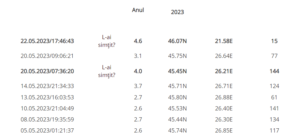 Землетрясение магнитудой 4,6 балла по шкале Рихтера произошло вечером, 22 мая, в уезде Арад в Румынии на глубине 2.2 километров, сообщает Институт физики Земли. Землетрясение произошло в 20:46 в районе Банат.