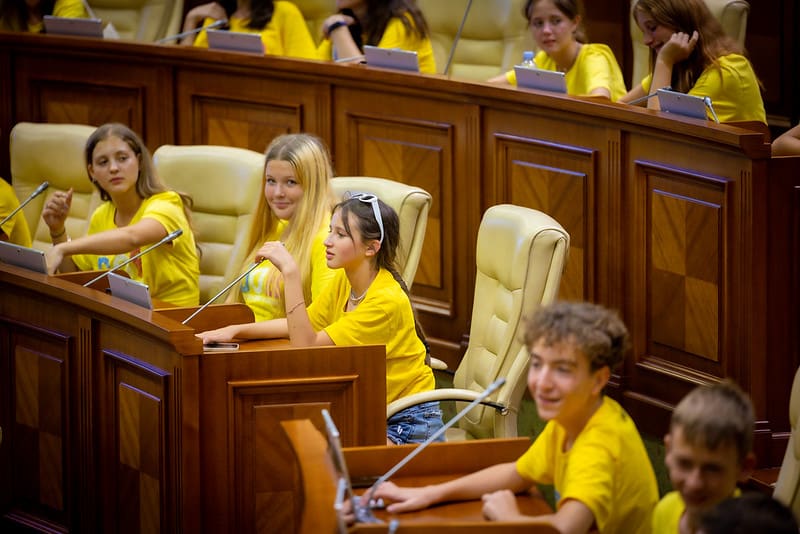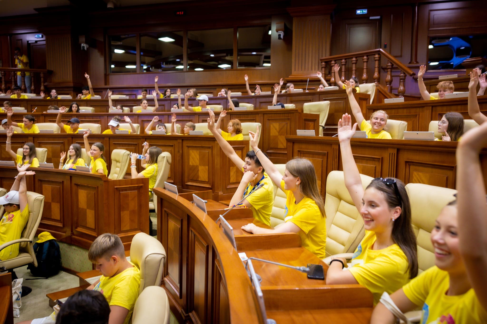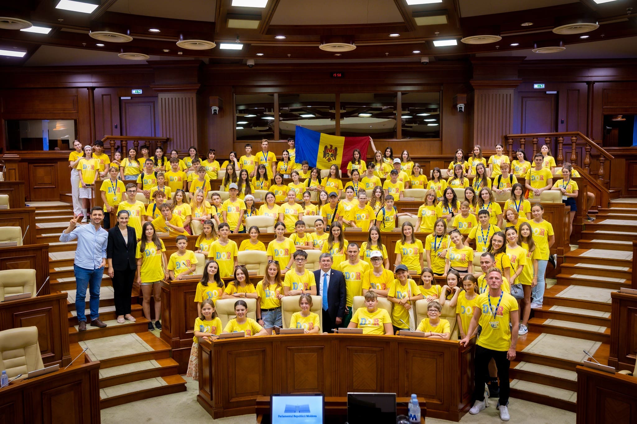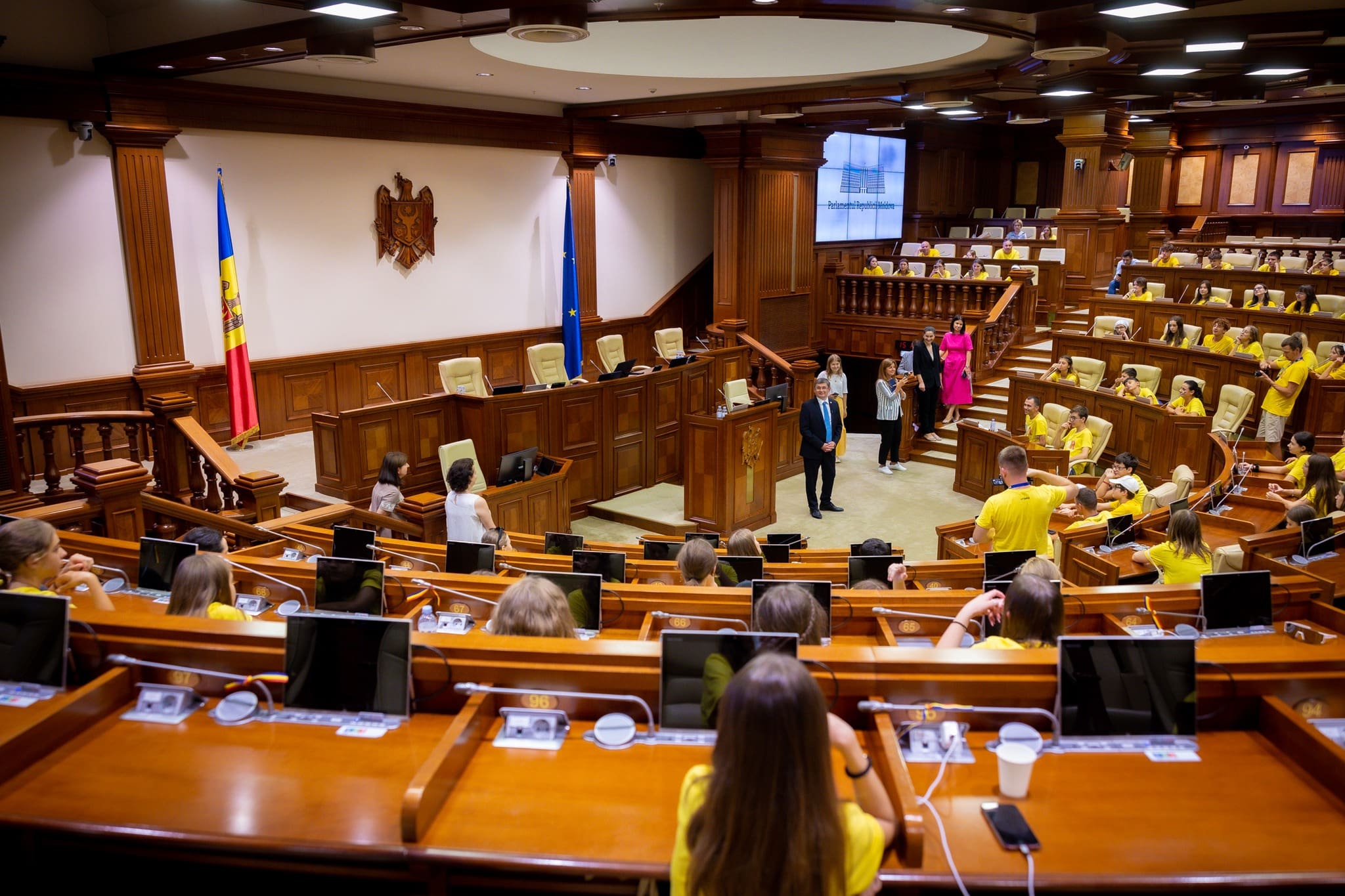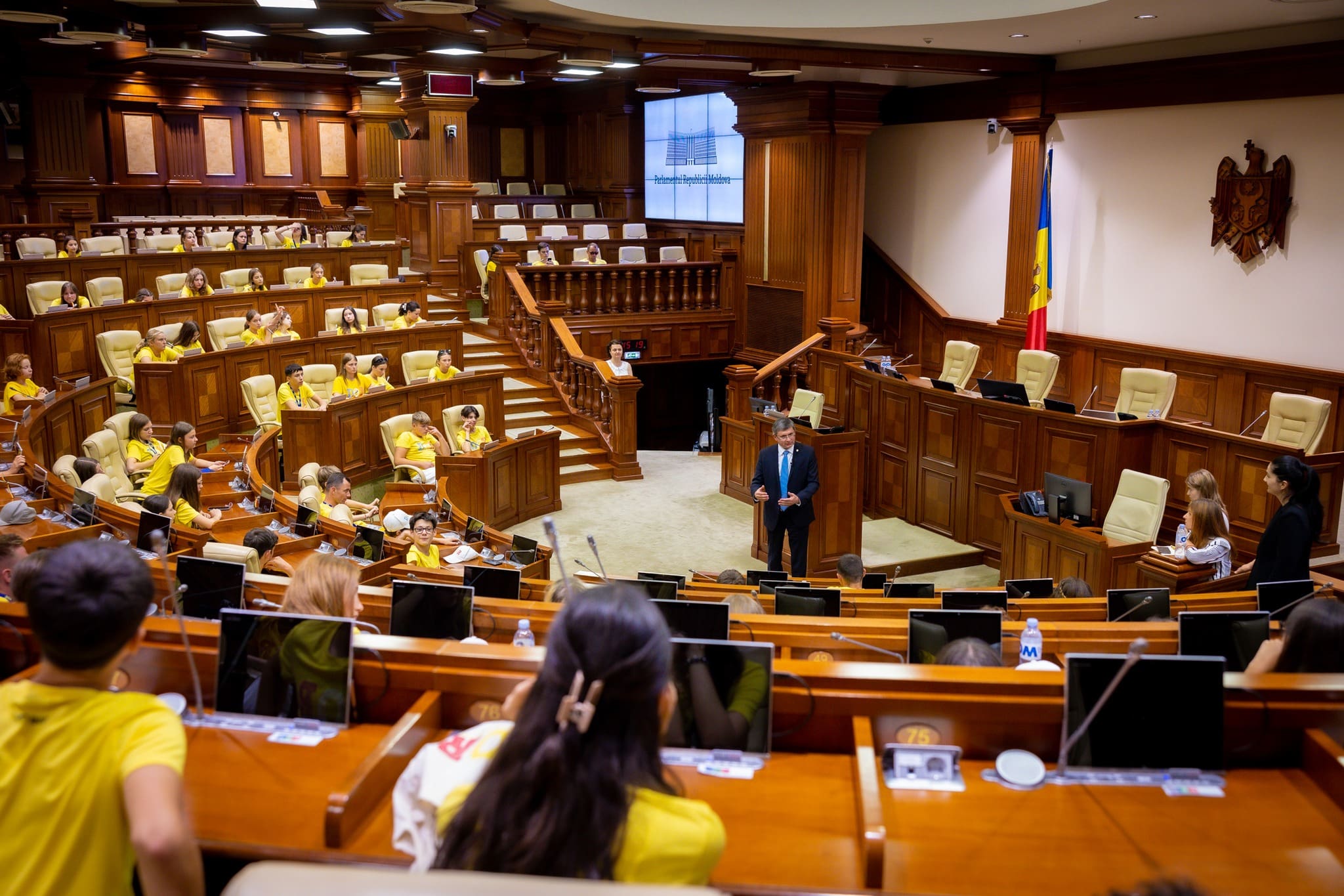 Зал заседаний парламента сегодня выглядел совершенно иначе. Все депутатские места заняли 100 школьников родом из Молдовы, но проживающих за границей. Об этом написал на своей странице в Facebook спикер Игорь Гросу.
