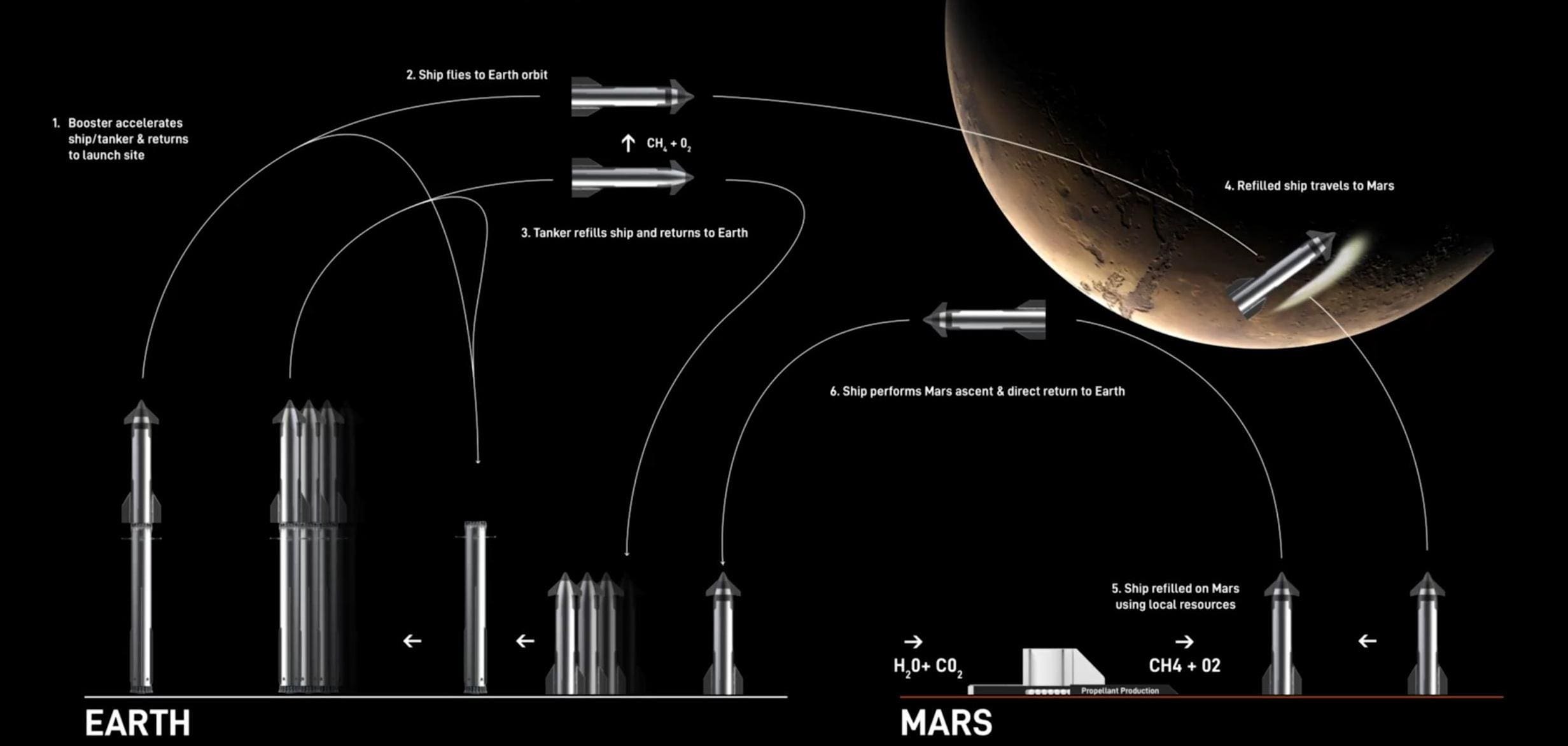 Схема покорения Марса, по мнению Маска, выглядит следующим образом: