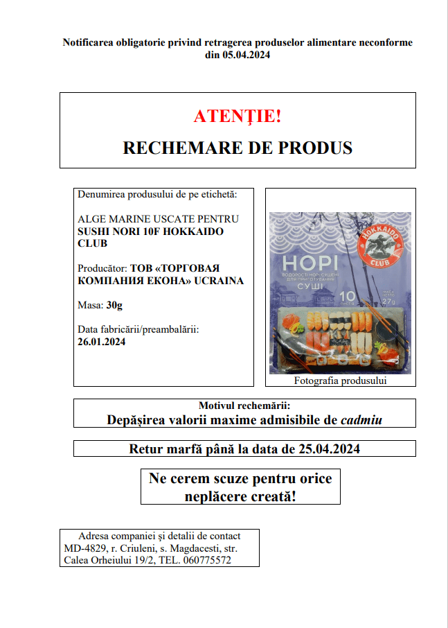 «В соответствии с действующим законодательством операторы пищевой промышленности, держатели несоответствующих пищевых продуктов, обязаны изъять их с рынка и информировать НАПБ о предпринятых действиях, чтобы избежать или снизить риски для здоровья человека. Не принявшие меры понесут юридическую ответственность.
