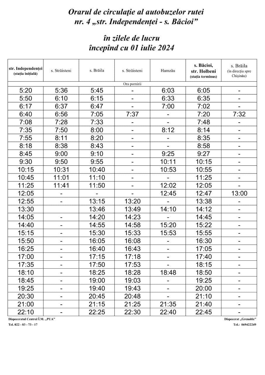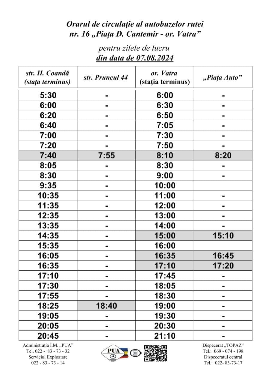 Кроме того, с 07.08.2024 изменится расписание пригородного автобусного маршрута № 16 «Площадь Д. Кантемира – г. Ватра».