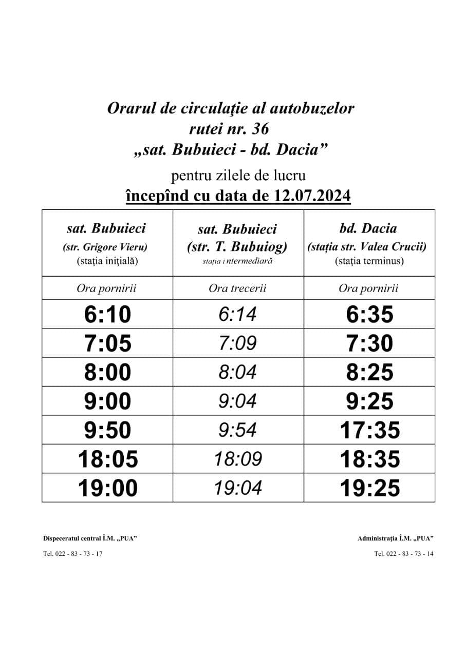 - № 36 «бул. Дачия – ком. Бубуечь»;