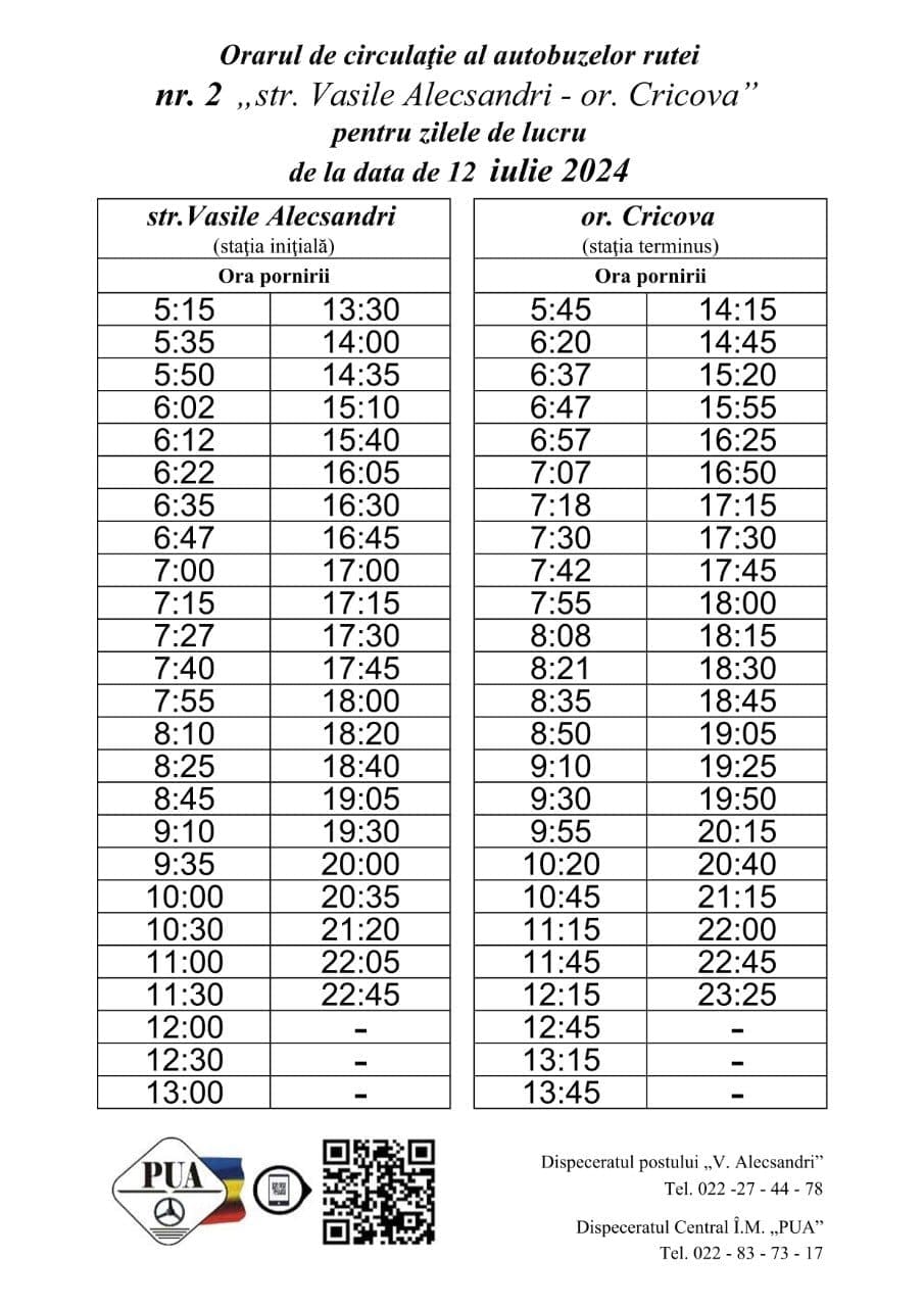 Напомним, что в связи с проведением местными властями Дурлешт ремонтных работ на улице Картуша, пригородный автобусный маршрут № 12 приостановил свою работу до 31.08.2024.