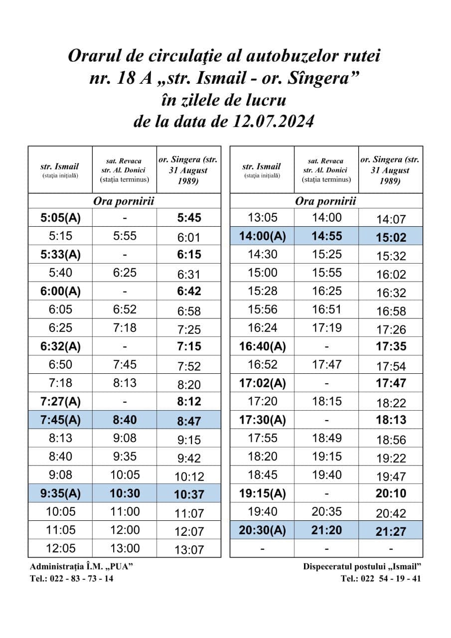 - № 18 A «ул. Измаильская – г. Сынжера»;