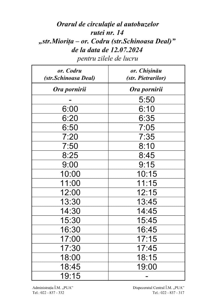 - № 14 «г. Кодру, ул. Скиноаса Дял – г. Кишинев, ул. Миорица»;