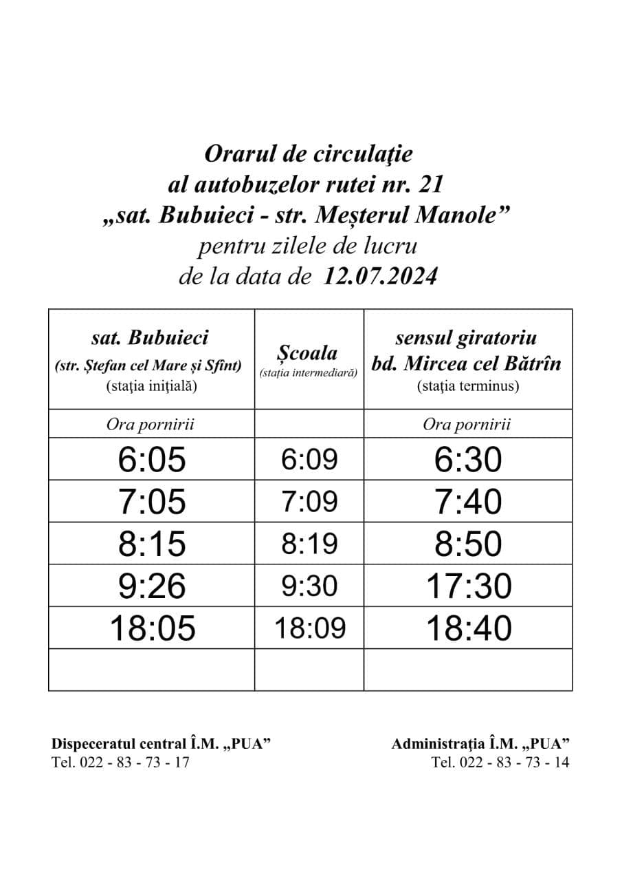 - № 21 «ул. Мештерул Маноле – ком. Бубуечь»;