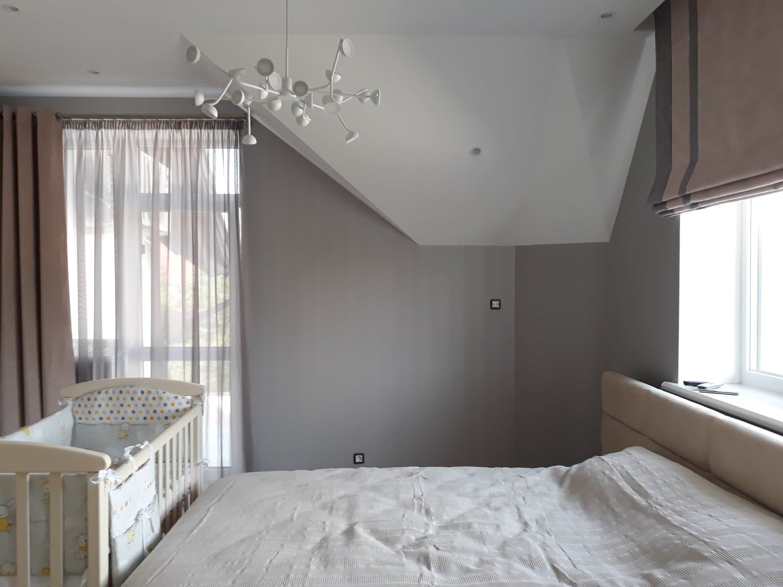 В спальне комфорт и интимность имеют приоритет. Для портьер выбирайте непрозрачные, плотные ткани, чтобы обеспечить спокойный сон. Например, занавески blackout, которые полностью блокируют внешний свет. Можете выбрать бархат — он добавит комнате уюта и теплоты. Шторы в спальню могут  быть традиционного вида — гардина и портьеры, или римские  шторы (с равномерным складыванием материала в горизонтальные складки  при поднятии или опускании), добавляющие элегантность и изысканность в комнату.