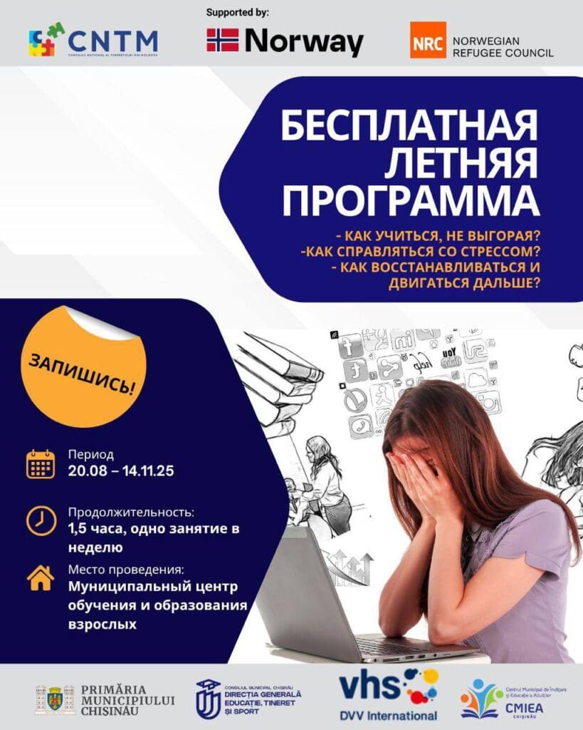 Мэрия Кишинева объявила о запуске новой программы под названием «Программа лучшего обучения для молодежи», которая стартует 20 августа 2025 года и продлится до 14 ноября. Проект реализуется в Муниципальном центре обучения и образования взрослых и рассчитан на молодых людей в возрасте от 16 до 35 лет, включая местных жителей и беженцев из Украины.