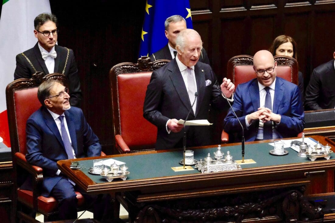 Во время своего государственного визита в Италию король Карл III также обратился к парламенту, став первым британским монархом, который выступил перед обеими палатами итальянского парламента — Палатой депутатов и Сенатом. В своей речи он подчеркнул важность защиты демократических ценностей и заявил: «Мир никогда не следует воспринимать как должное. Сегодня Великобритания и Италия едины в защите демократических ценностей».