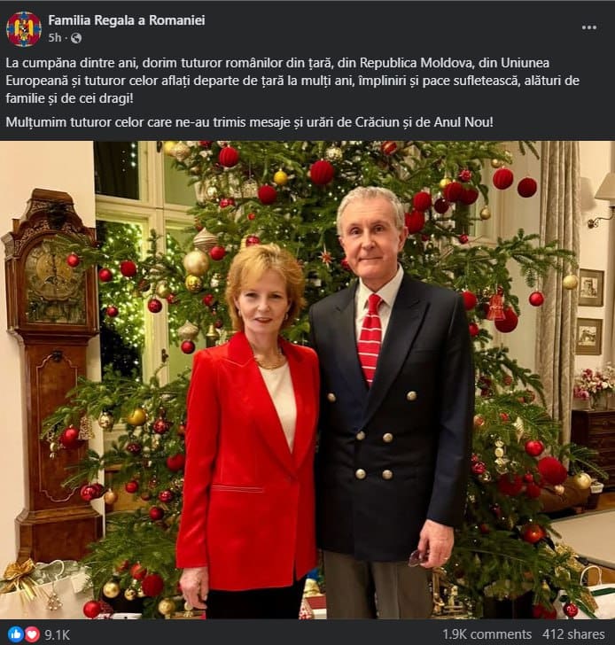 «На пороге нового года желаем всем румынам в стране, в Молдове, в ЕС и тем, кто далеко от дома, счастья, исполнения желаний и душевного спокойствия в кругу семьи и близких!» — говорится в сообщении королевской семьи.
