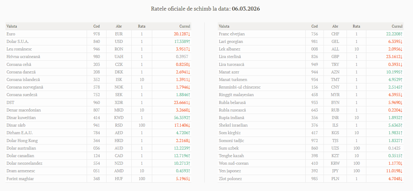 Национальный банк Молдовы установил официальный курс валют на сегодня, 6 марта.