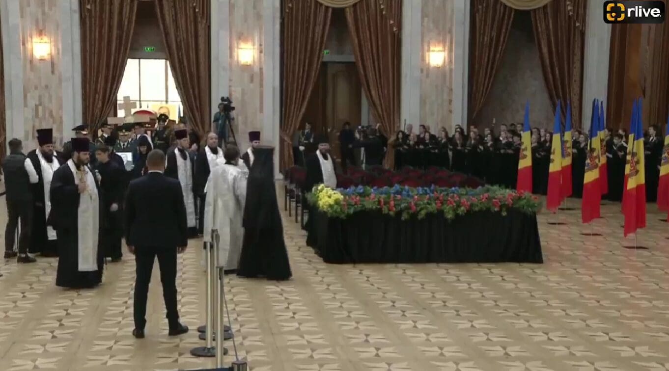У Дворца Республики сформировались очереди из желающих попрощаться с Мирчей Снегуром.На кадрах прямой трансляции, которую проводит RLIVE TV видно, как часть граждан ждут снаружи, в то время как другие группы уже вошли и выразили свое почтение первому президенту.