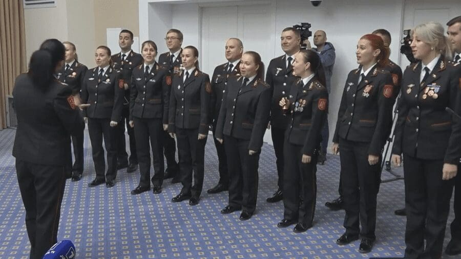 Колядующие из МВД посетили заседание кабинета министров. По традиции, они пожелали правителям добра, а затем попросили цуйку.