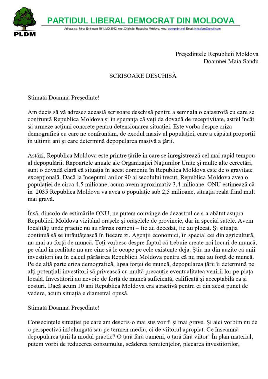 В этой связи либерал-демократ обращается к Майе Санду с просьбой признать серьезность проблемы и сплотиться для ее преодоления.