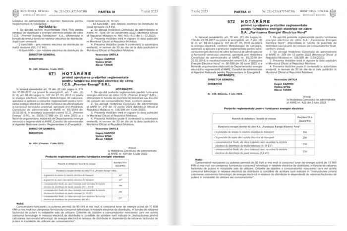 Поставщик электроэнергии Premier Energy просил тариф в 2,69 лея/кВтч, а FEE Nord – 3,37 лея/кВтч.