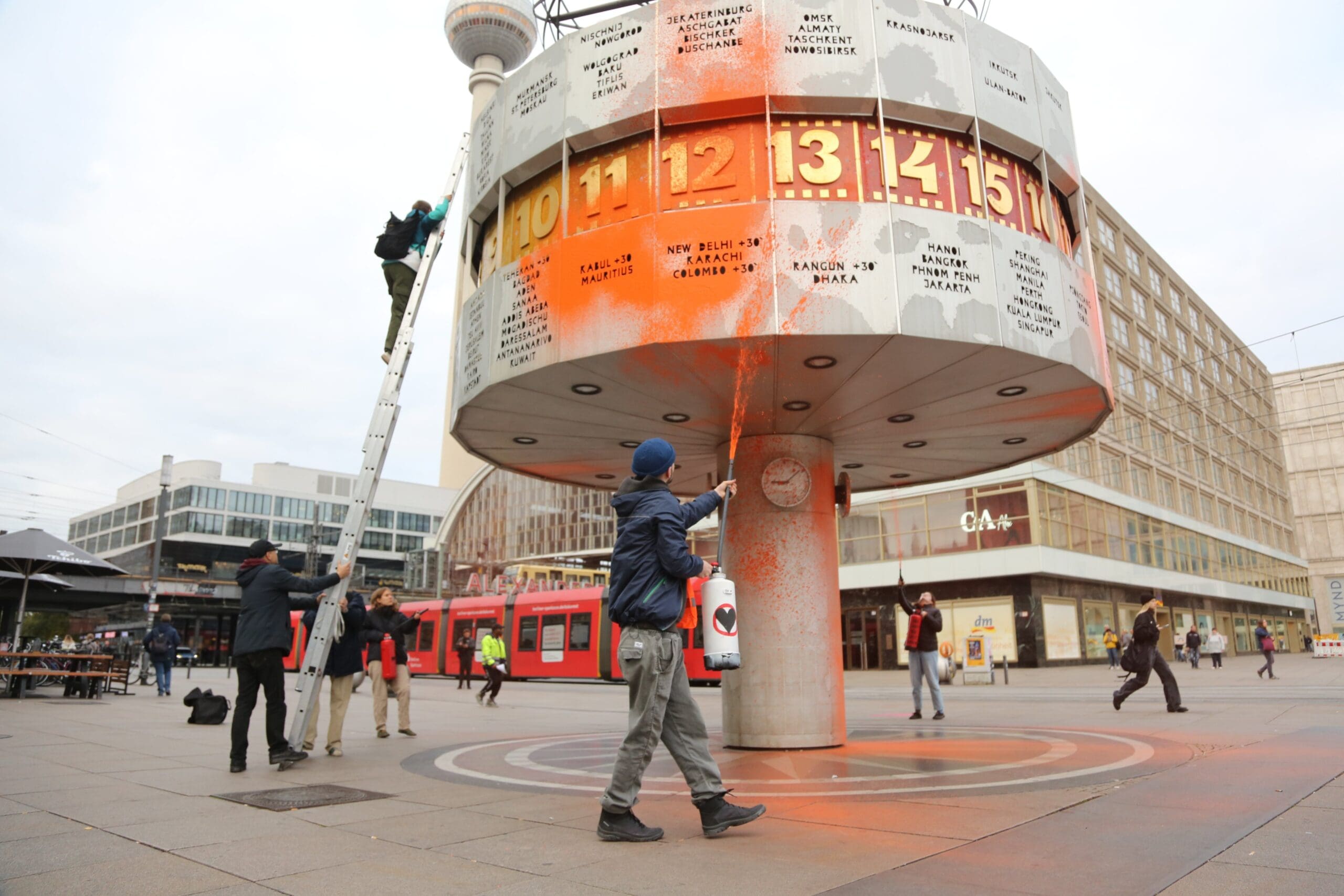 Экоактивисты облили краской знаменитые «Часы мира» в Берлине: участников акции задержали 13 января, 2024